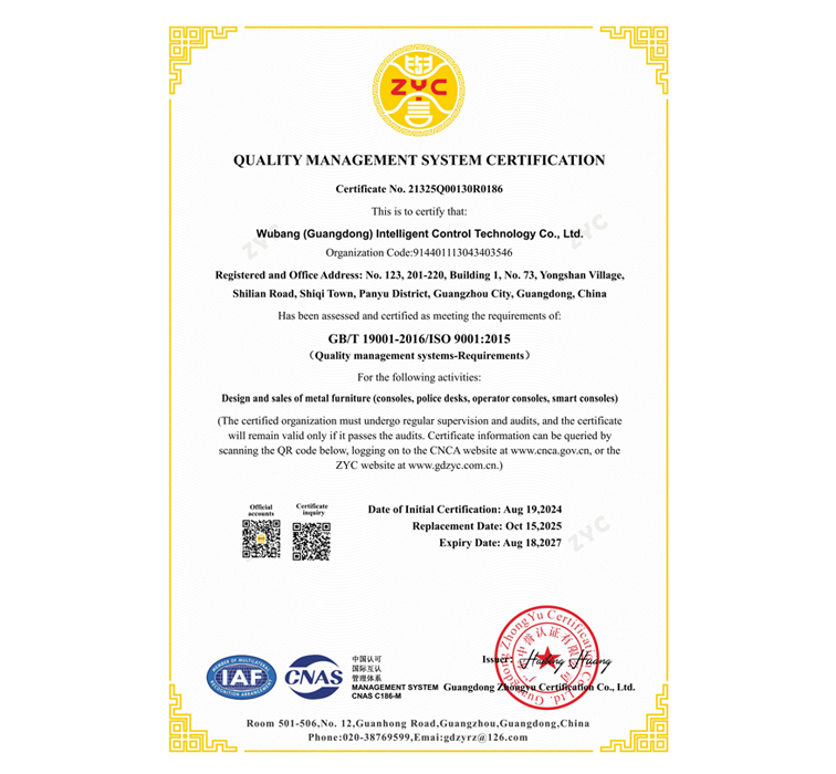 WuBang holds 72 national and international patents, certified by 15 global institutions including ISO, CE, BIFMA, SGS, UL, and RoHS.